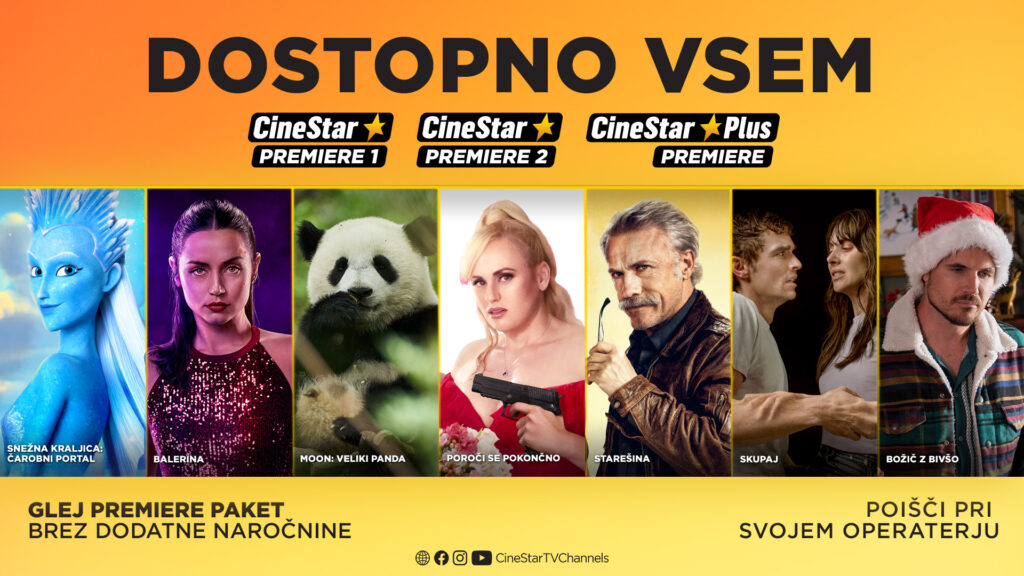 CineStar Premiere paket prinaša skrbno izbrane filmske uspešnice, družinske pustolovščine, romantične komedije, akcijske hite in napete romantične skrivnosti – vse na enem mestu in dostopno vsem.