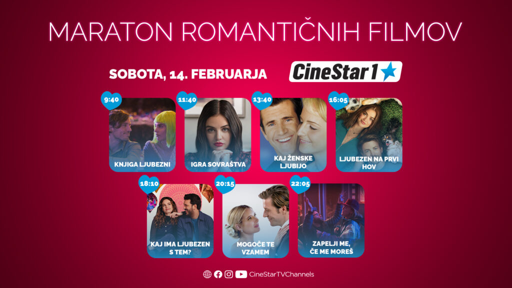 Valentinovo je popolna priložnost za pobeg v svet čustev, usodnih srečanj in ljubezenskih zgodb, ki ostanejo v srcu. CineStar 1 tudi letos, 14. februarja, prinaša poseben maraton romantičnih filmov, ki traja od jutra do poznih večernih ur.